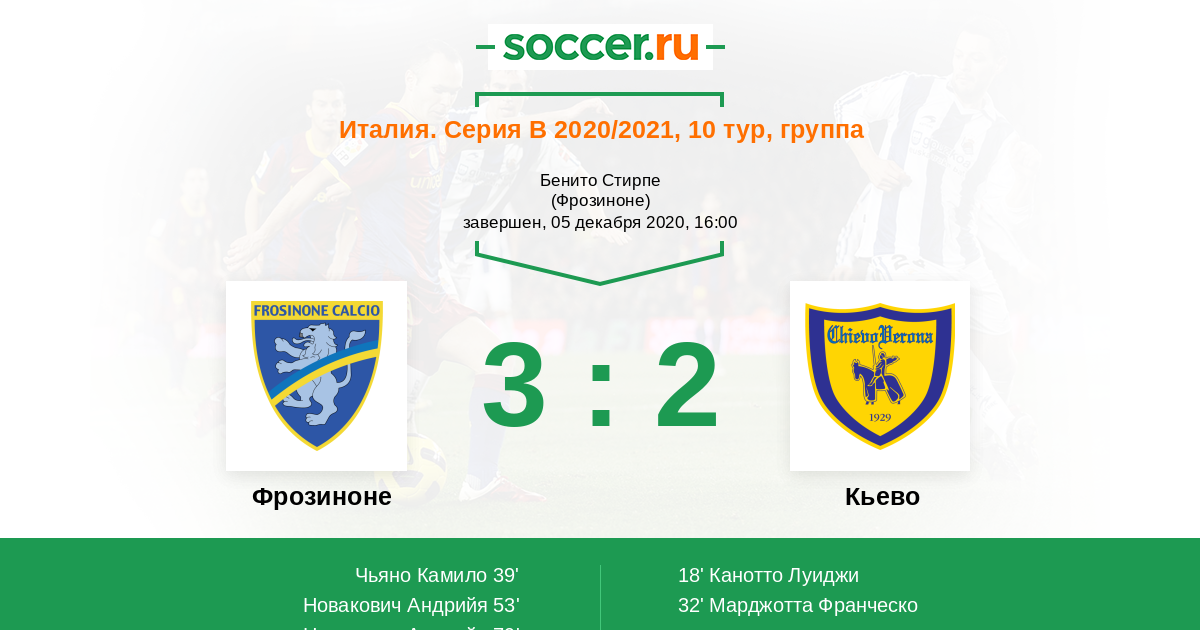 39' (1:2) Чьяно Камило (28) (Роден Маркус (7))
