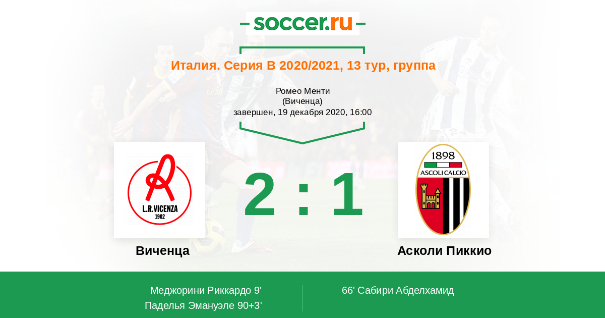 9' (1:0) Меджорини Риккардо (69) (Даль Монте Никола (34))