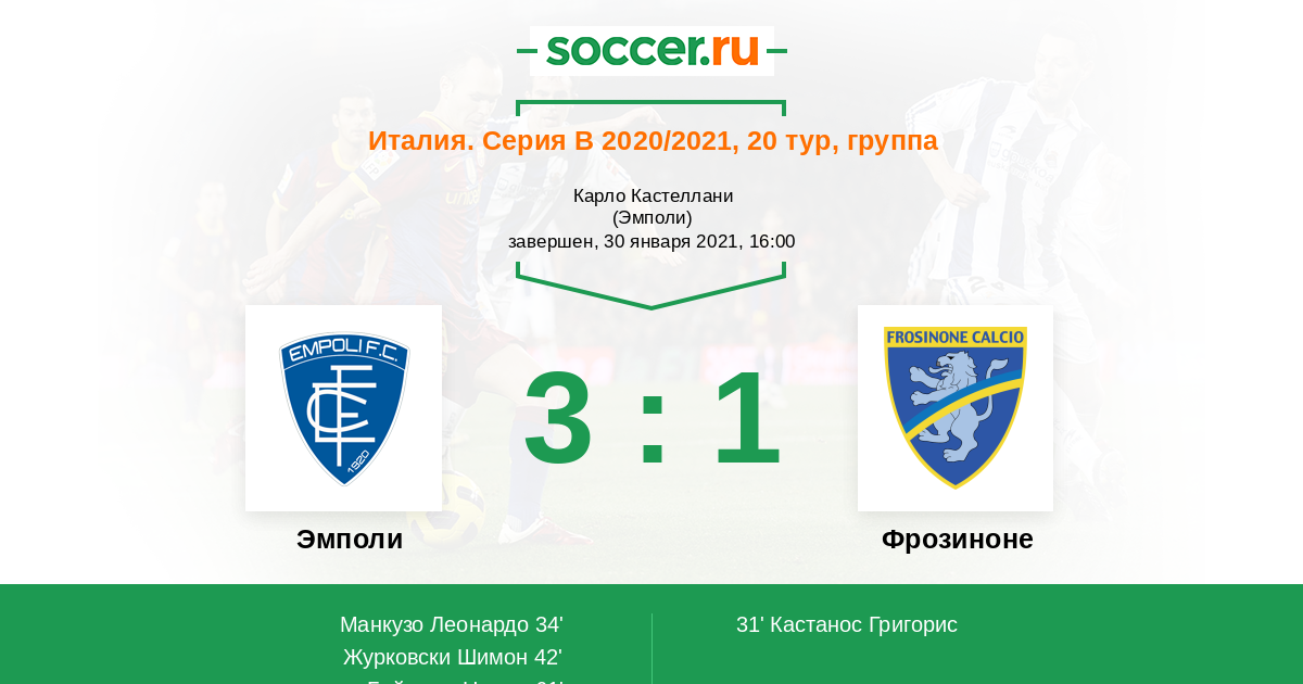 42' (2:1) Журковски Шимон (27) (Сабелли Стефано (21))