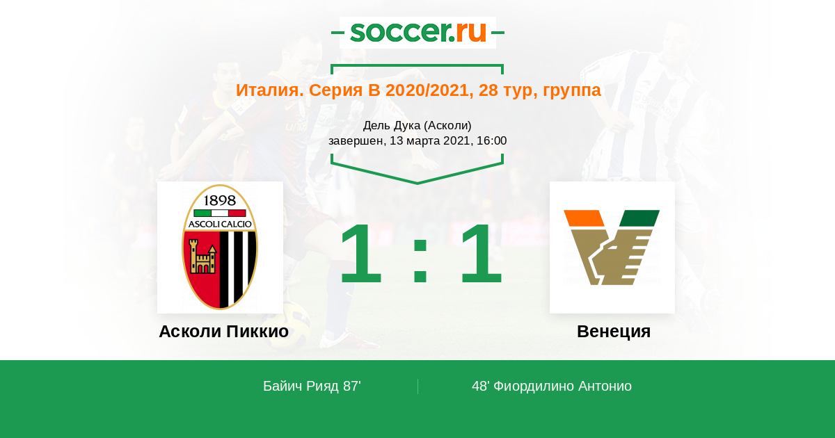 48' (0:1) Фиордилино Антонио (16) (Чеккарони Пьетро (32))