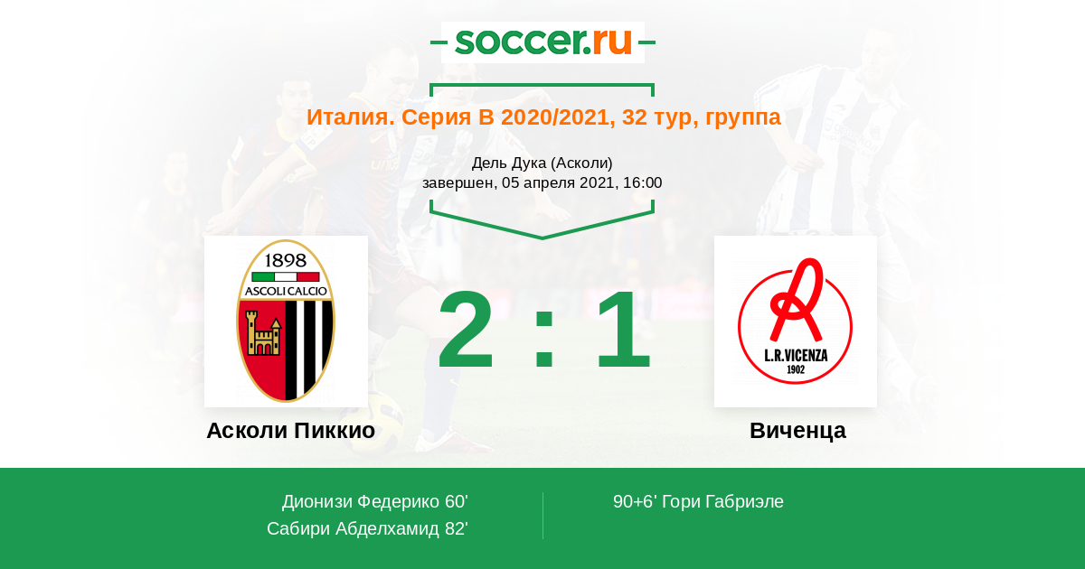 60' (1:0) Дионизи Федерико (9) (Сабири Абделхамид (21))
