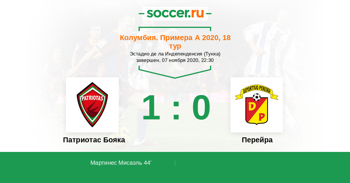 44' (1:0) Мартинес Мисаэль (9) (Мантиллья Даниэль (10))