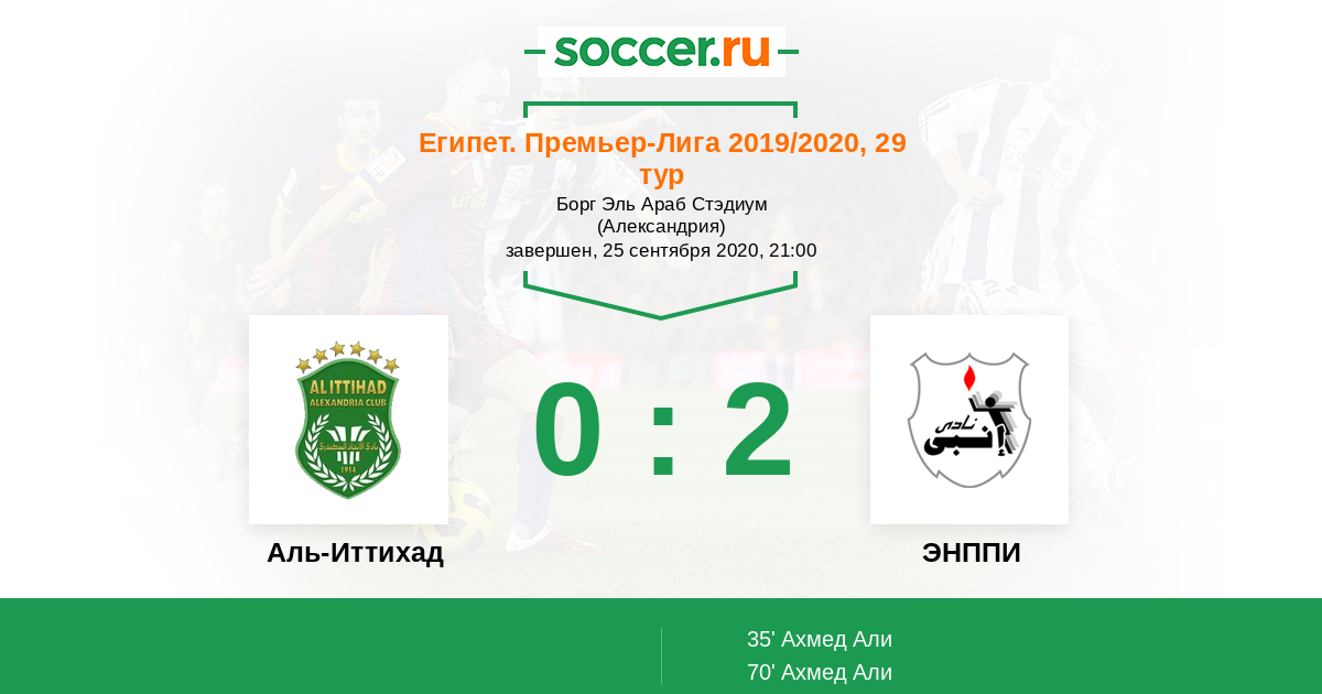 70' (0:2) Ахмед Али (25) (Сабри Рами (8))