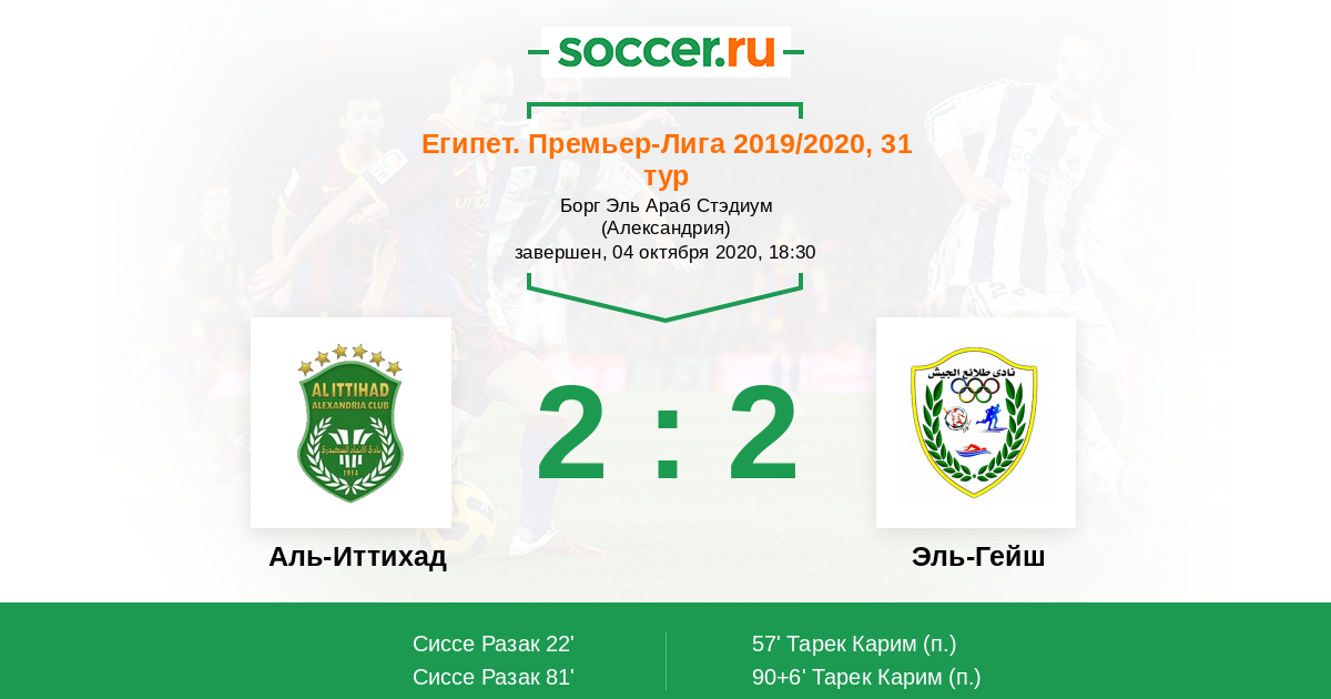 22' (1:0) Сиссе Разак (20) (Камар Халед (9))