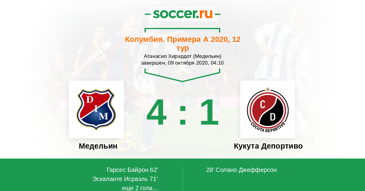 84' (4:1) Куэста Хуан (25) (Эскаланте Исраэль (9))