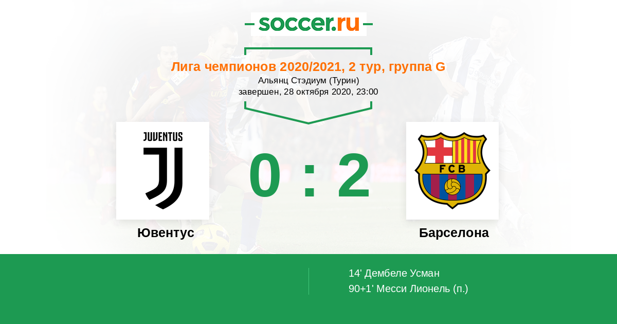 14' (0:1) Дембеле Усман (11) (Месси Лионель (10))