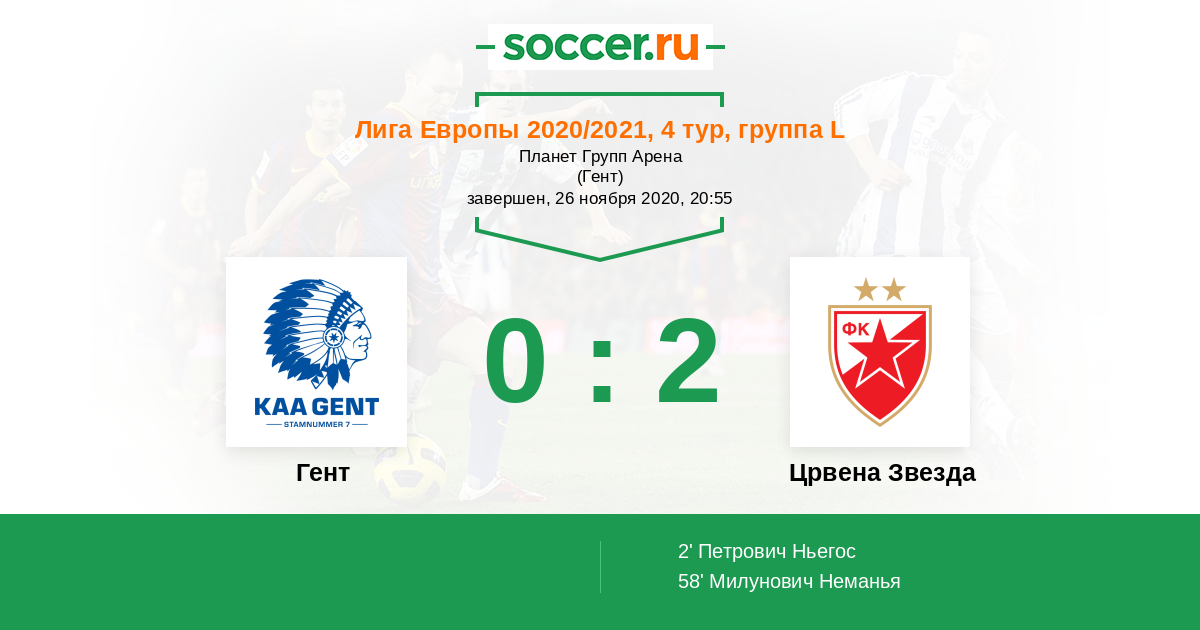 2' (0:1) Петрович Ньегос (20) (Бен Набуан Эль Фарду (31))