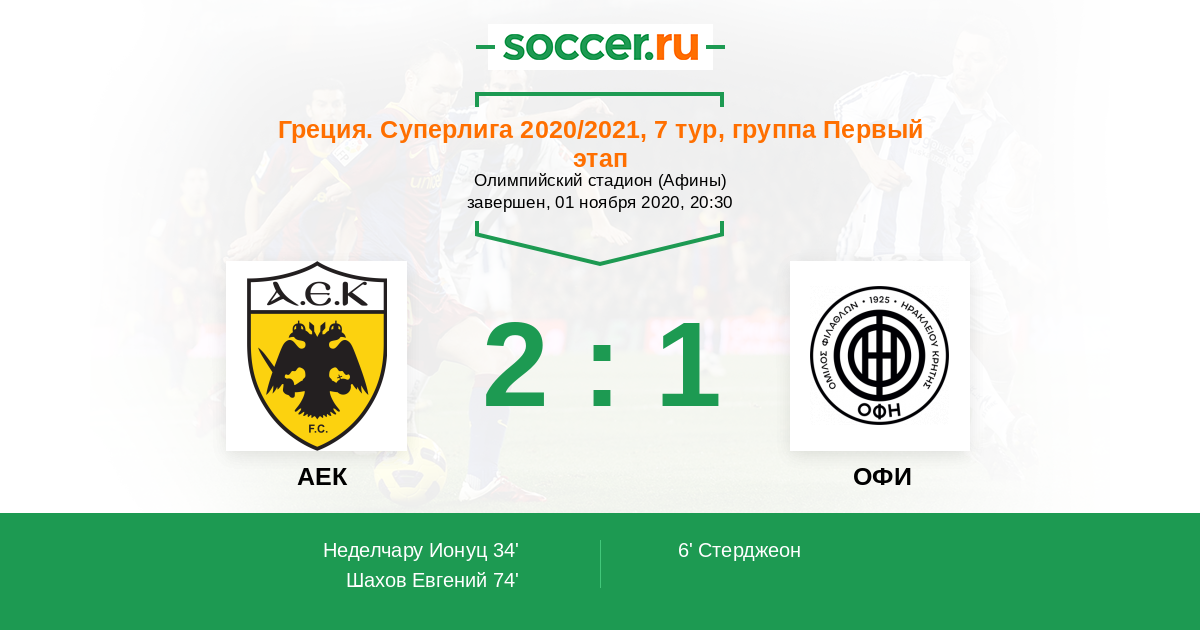 34' (1:1) Неделчару Ионуц (5) (Манталос Петрос (20))