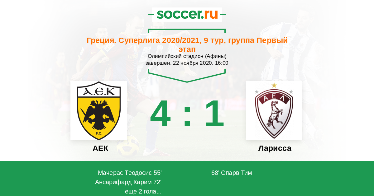 72' (2:1) Ансарифард Карим (11) (Манталос Петрос (20))