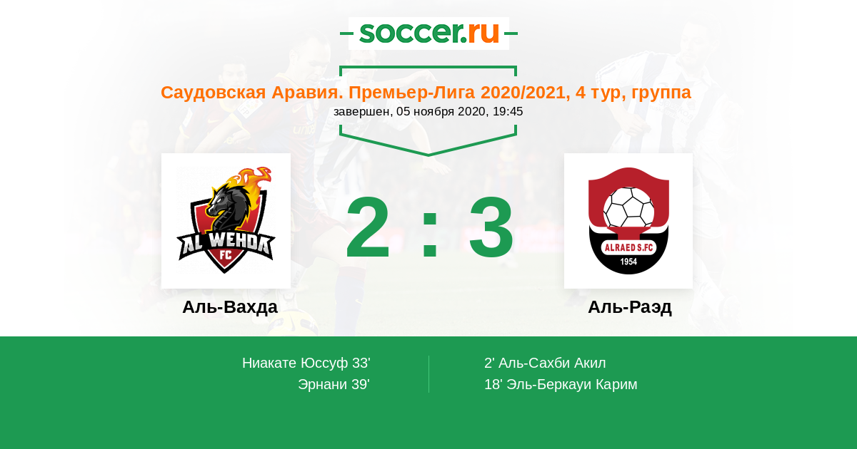 33' (1:2) Ниакате Юссуф (18) (Аль-Исса Хуссейн (3))