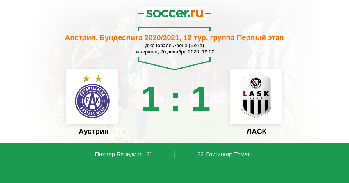 13' (1:0) Пихлер Бенедикт (11) (Тайгль Георг (39))