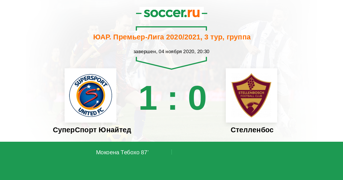 Запасные: 10 Мендьета Хуниор (с 65'), 11 Кхунеди Молалехи (с 83'), 21 Исаакс Васим (с 90+1'), 29 Мун Райан (с 90+1'), 32 Мбекиле Асавела, 4 Де Год Могамад, 12 Гранвальд Уоррен Скотт, 17 Стивенс Саге Шейн
