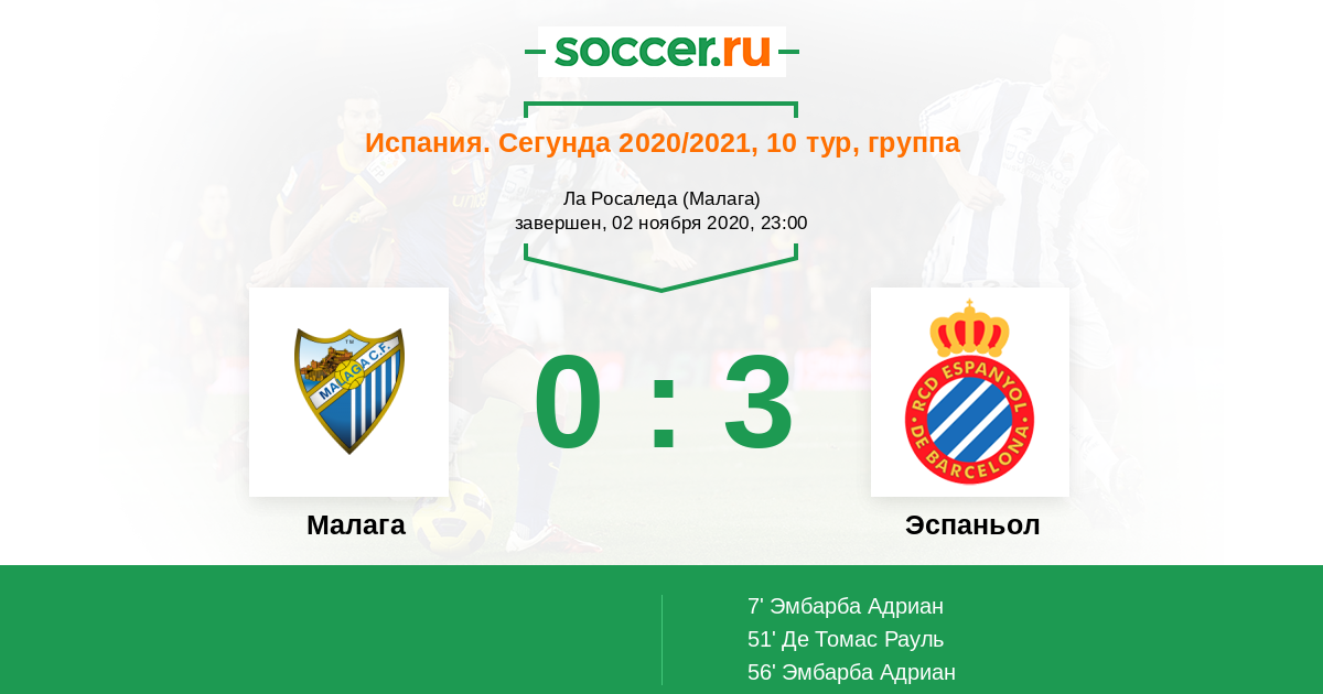 56' (0:3) Эмбарба Адриан (23) (Де Томас Рауль (11))