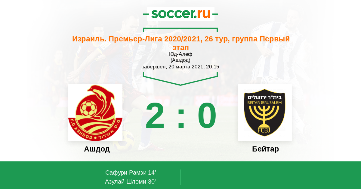 Запасные: 10 Матеусиньо (с 37'), 3 Биттон Орен (с 58'), 23 Тамир Ади (с 58'), 39 Влийтер Глеофило (с 58'), 30 Фадида Роэи (с 77'), 4 Захави Ор, 17 Парадо Узиэль, 98 Далоя Нетанель