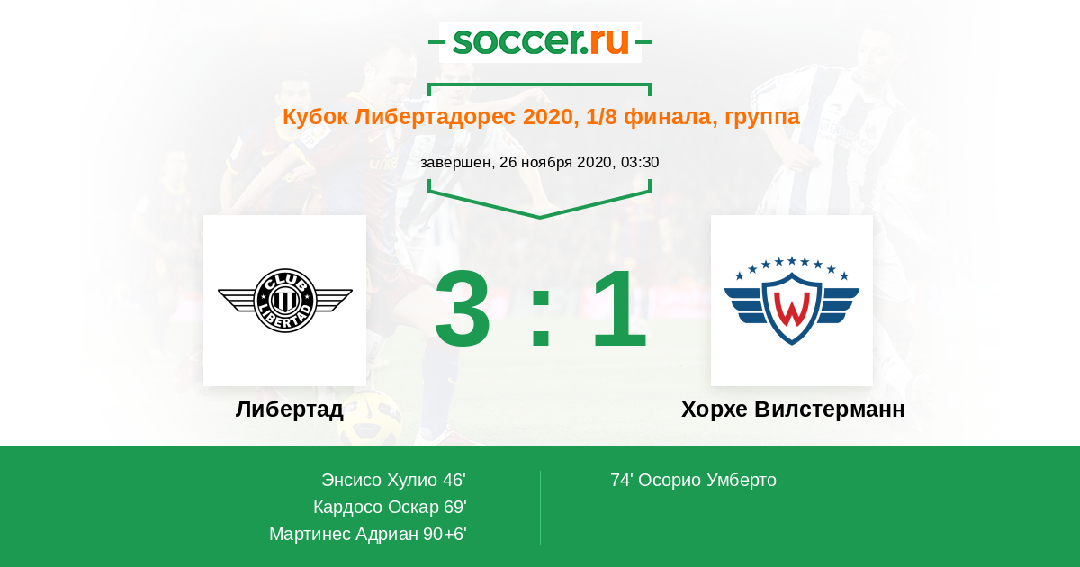 74' (2:1) Осорио Умберто (26) (Апонте Хуан (4))