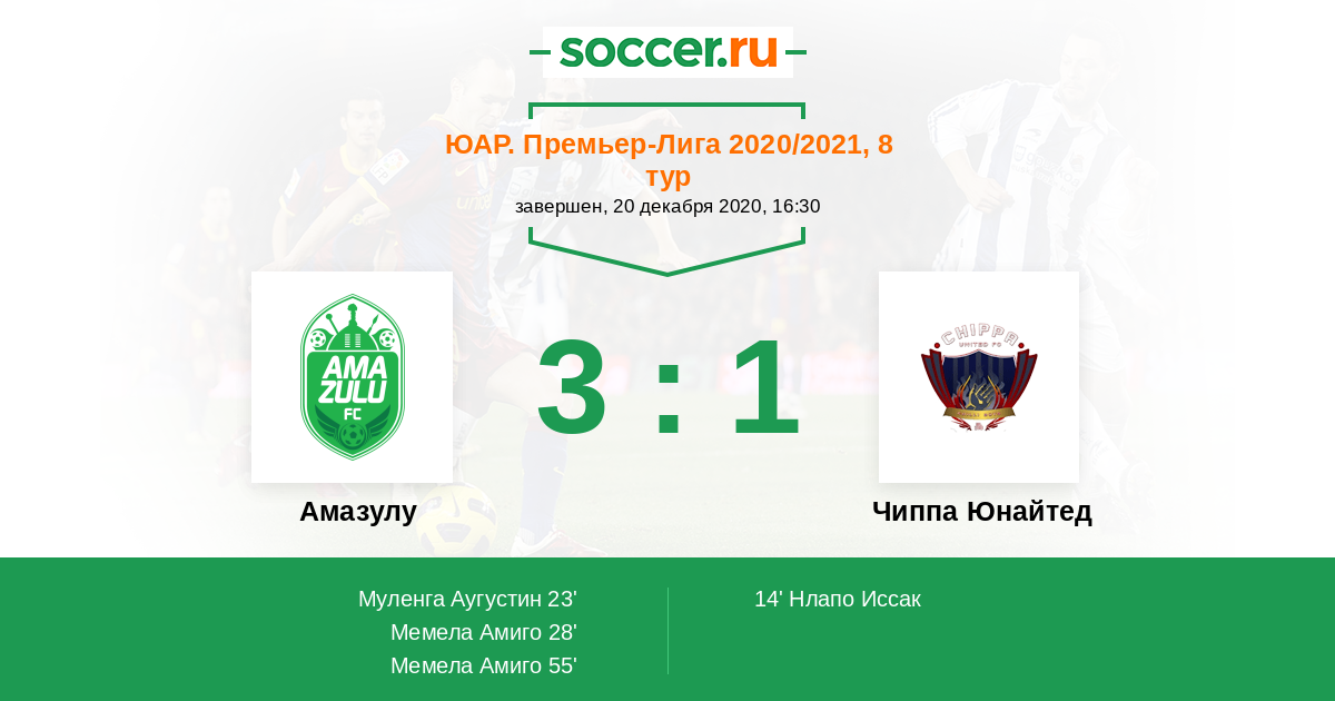 28' (2:1) Мемела Амиго (15) (Муленга Аугустин (30))