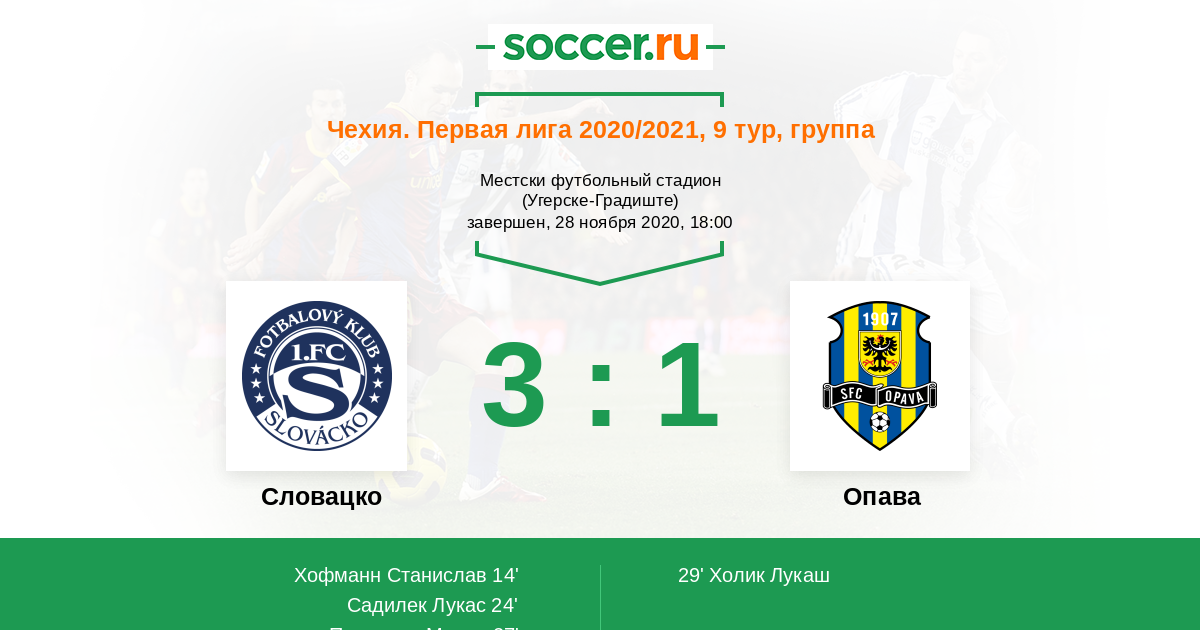 Запасные: 10 Навратил Ян (с 66'), 22 Сисилия Ригино (с 71'), 15 Юречка Вацлав (с 72'), 19 Калабишка Ян (с 89'), 26 Кубала Филип (с 90'), 25 Немрава Вит, 13 Кохут Михал