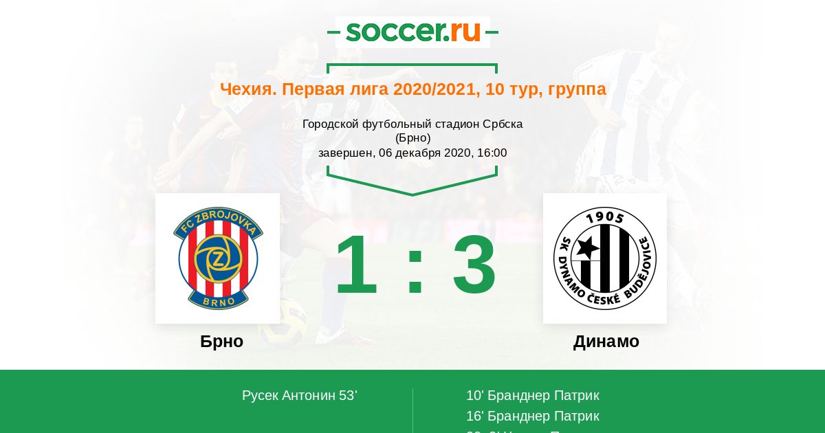 53' (1:2) Русек Антонин (10) (Дрекса Павел (6))