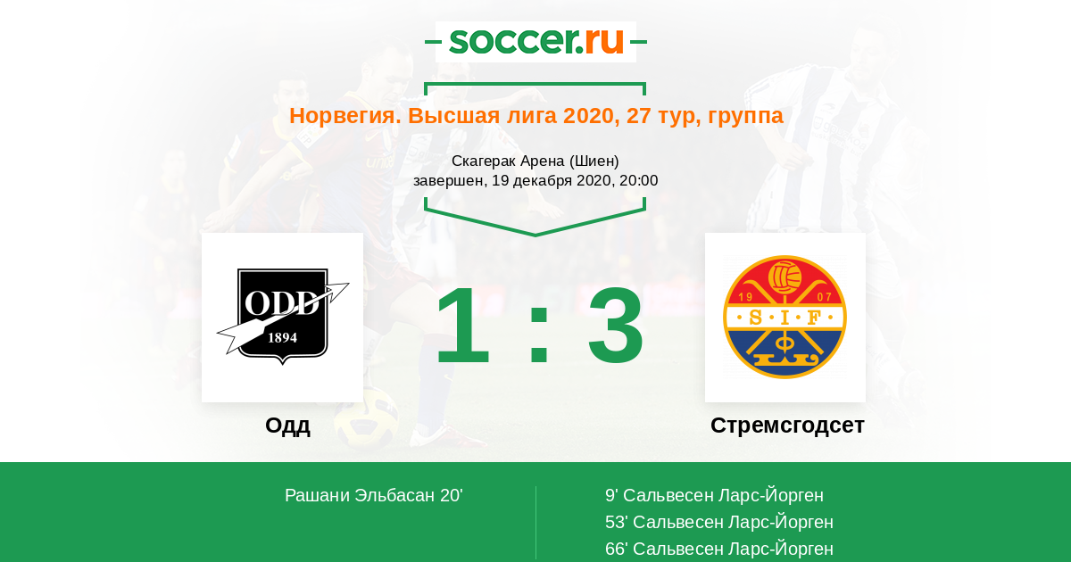 20' (1:1) Рашани Эльбасан (11) (Рууд Эспен (2))