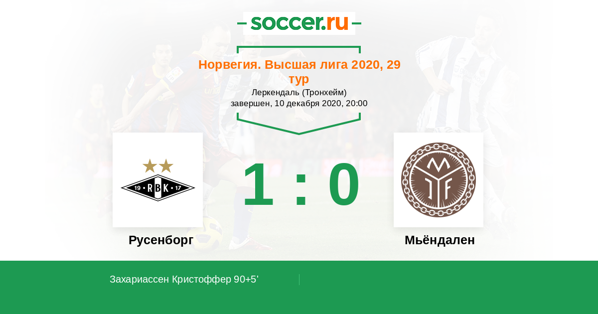 90+5' (1:0) Захариассен Кристоффер (18) (Скьельбред Пер-Сильян (5))