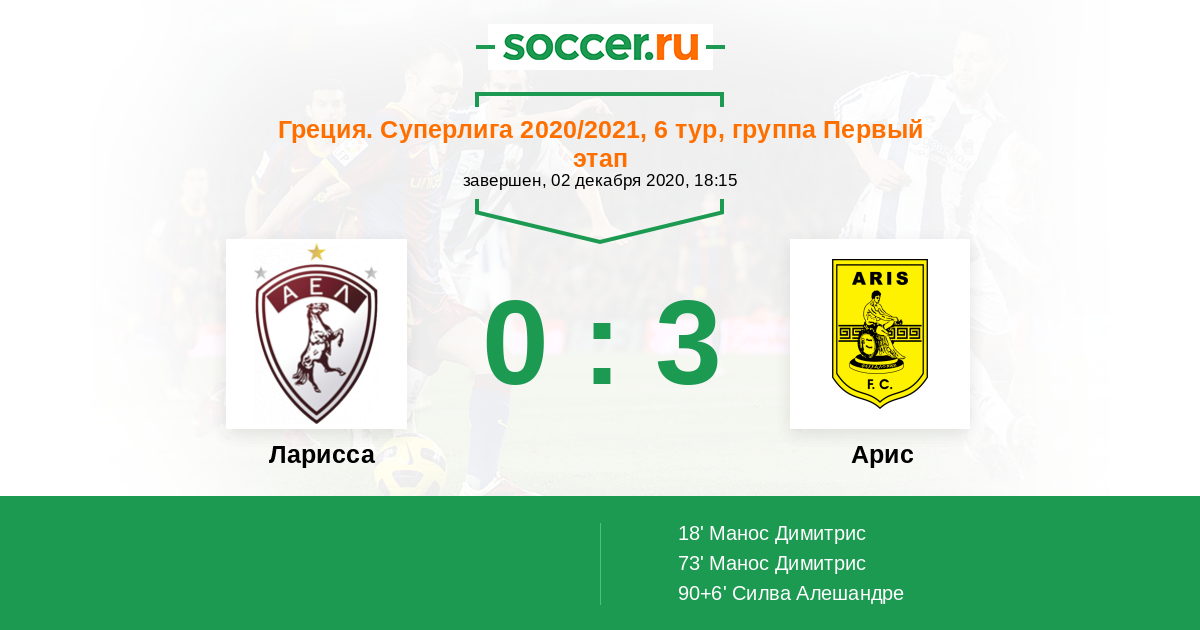 18' (0:1) Манос Димитрис (9) (Сакич Эмануэль (66))