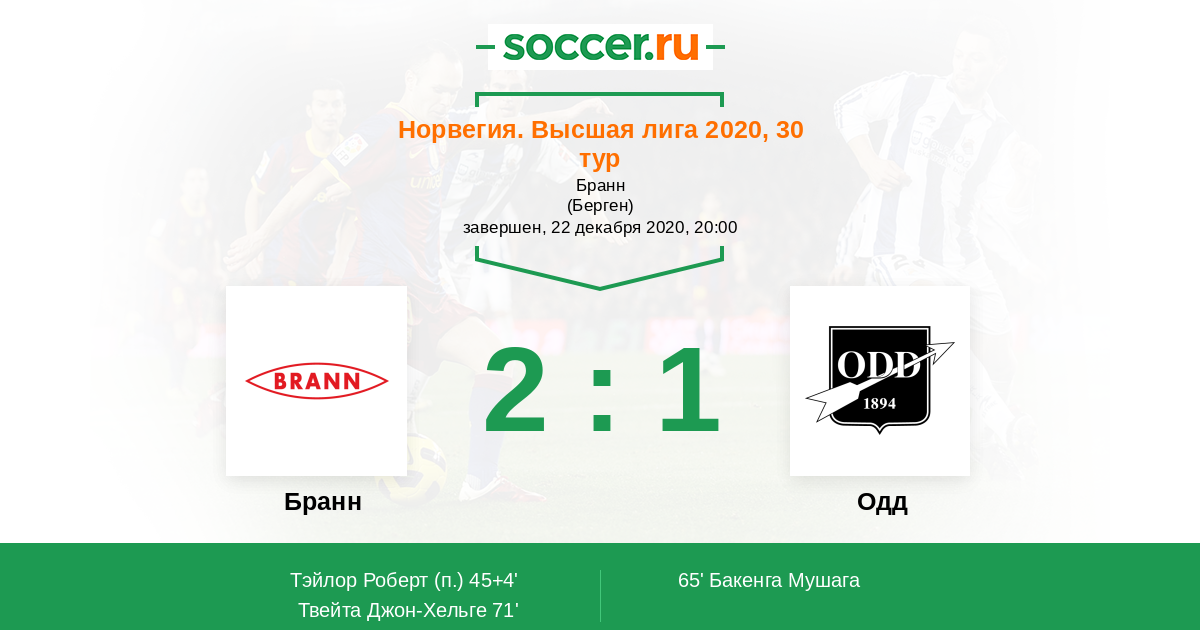71' (2:1) Твейта Джон-Хельге (19) (Тэйлор Роберт (16))