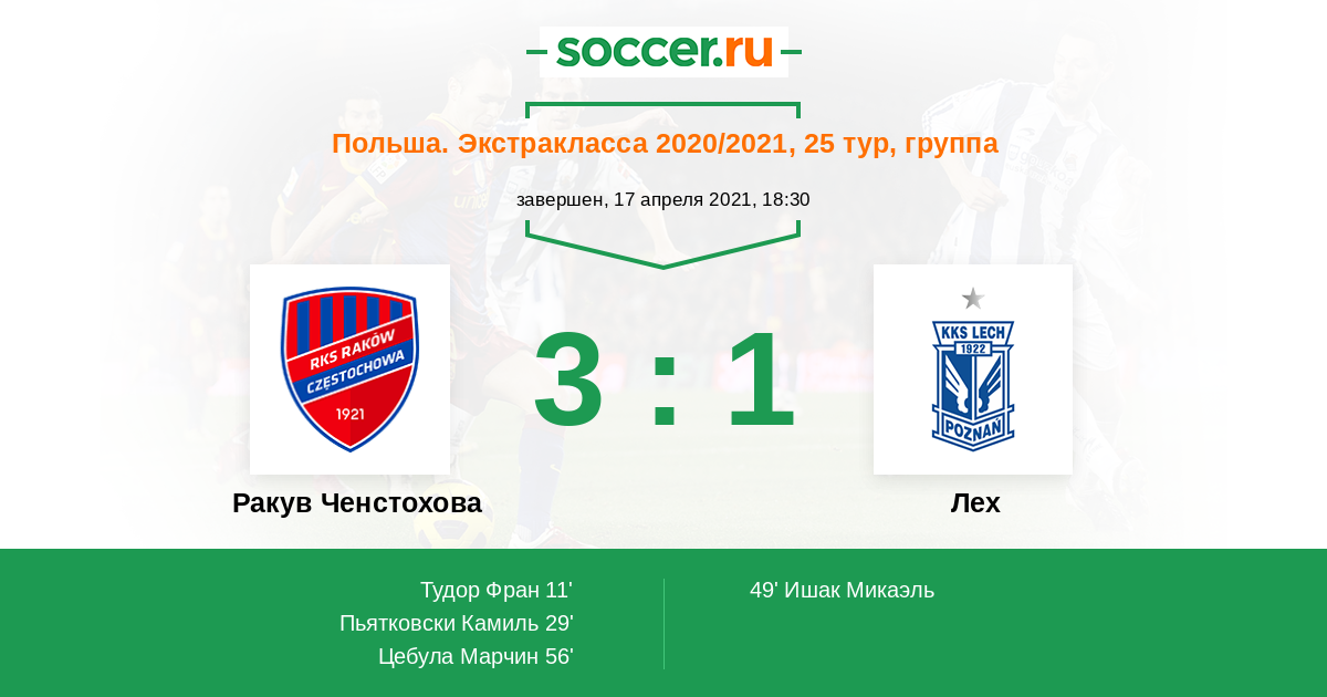 29' (2:0) Пьятковски Камиль (4) (Цебула Марчин (77))