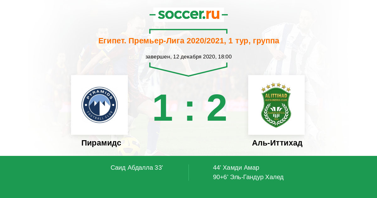 44' (1:1) Хамди Амар (77) (Ризк Махмуд (4))