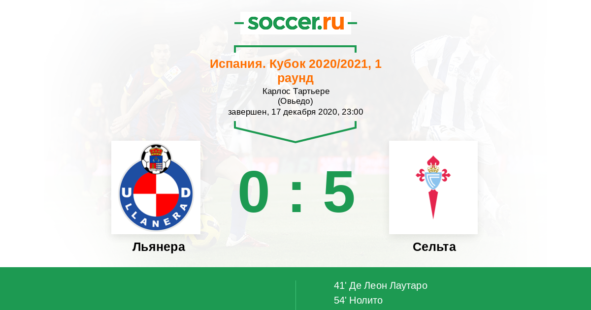Запасные: 9 Нолито (с 46'), 27 Баеза Мигель (с 62'), 10 Аспас Яго (с 62'), 2 Мальо Уго (с 70'), 14 Тапиа Ренато (с 72'), 4 Араухо Нестор, 13 Бланко Рубен, 31 Вейга Габриэль, 15 Оласа Лукас