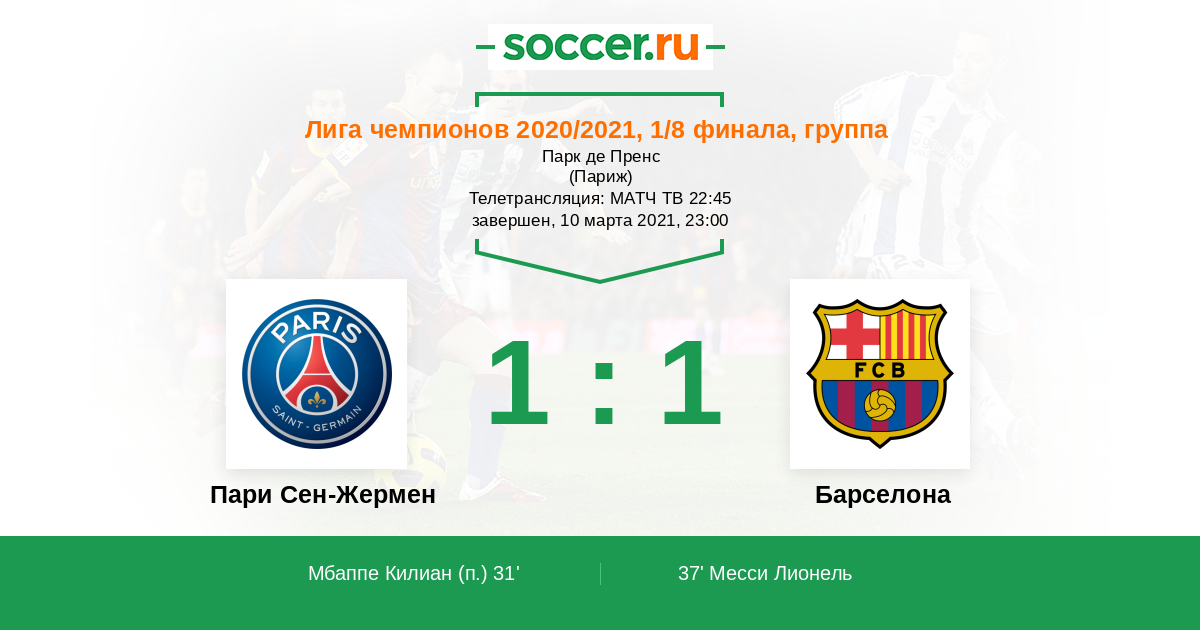 45+3' (1:1) Нереализованный пенальти Месси Лионель (10)