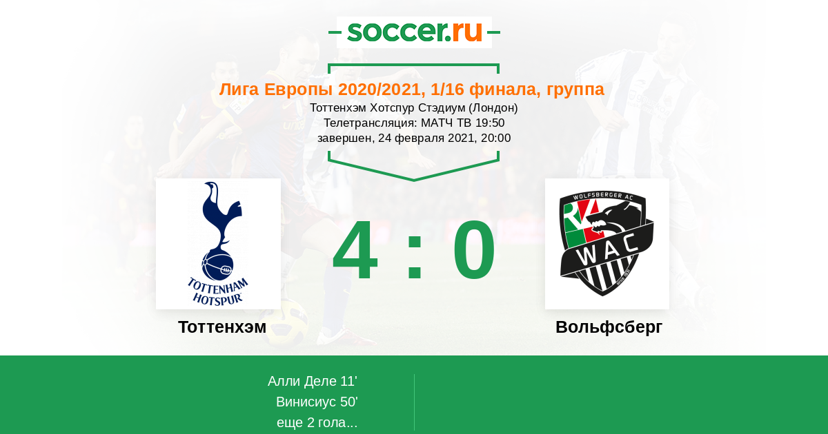 Для "Вольфсберга" уже достижение, что они достигли столь высокой стадии еврокубков. С "Тоттенхэмом" из-за разнице в классе им в принципе ловить было нечего. Что подкупало в лондонской команде, что они продолжали идти вперед и старались забить, даже имея преимущество по результатам двух матчей более пяти мячей - видимо в АПЛ по другому не могут. Ну а австрийцам в качестве утешения можно считать, что они вылетели от очень достойной команды.