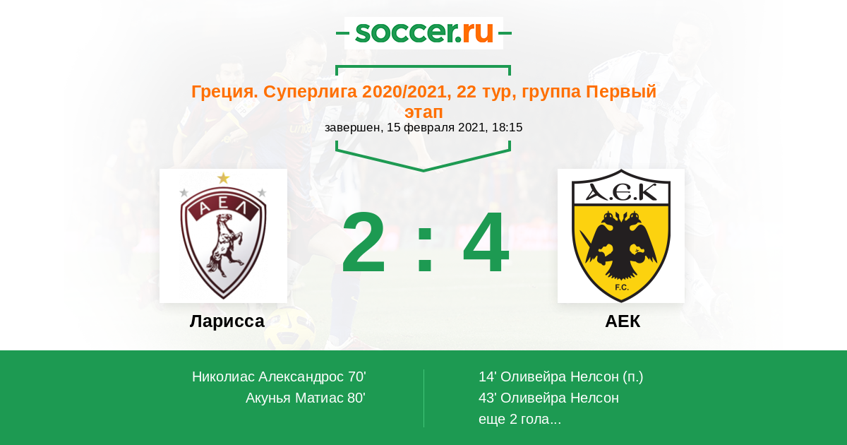 43' (0:2) Оливейра Нелсон (18) (Гарсия Ливай (9))