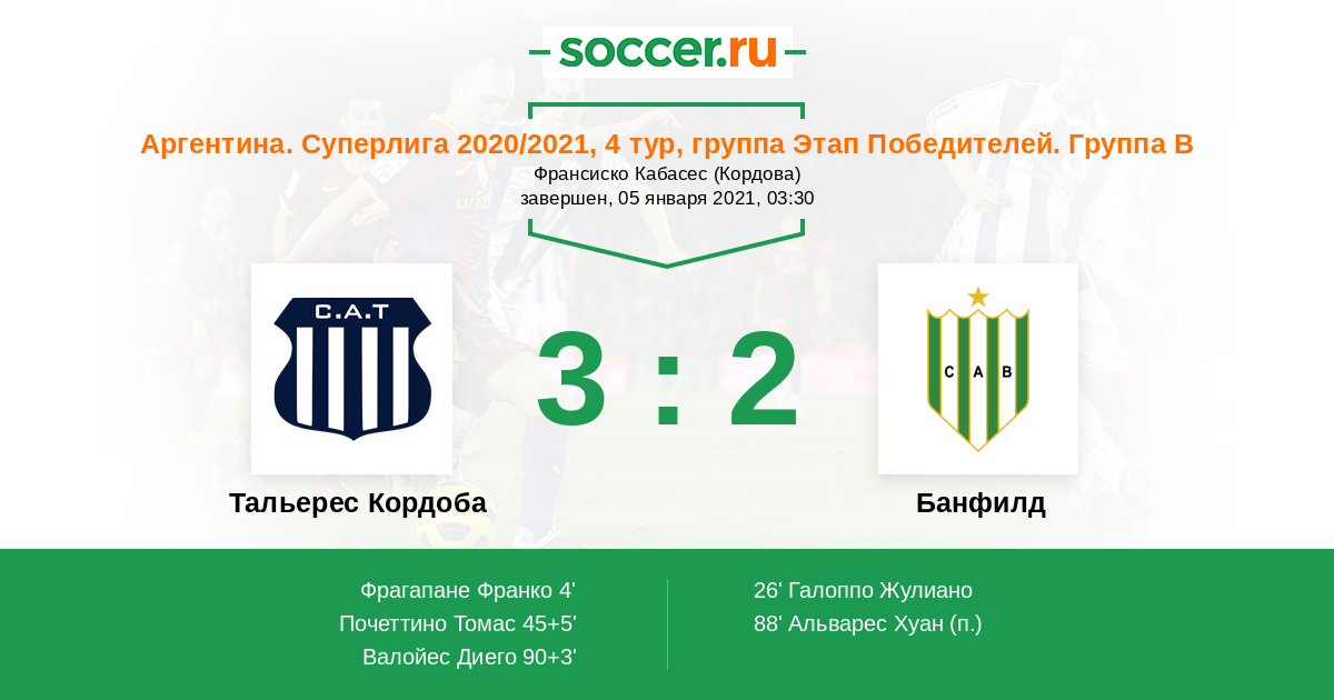90+3' (3:2) Валойес Диего (7) (Тенаглиа Науэль (14))