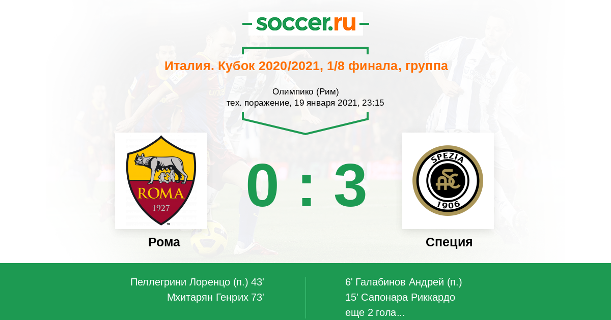 15' (0:2) Сапонара Риккардо (23) (Галабинов Андрей (9))
