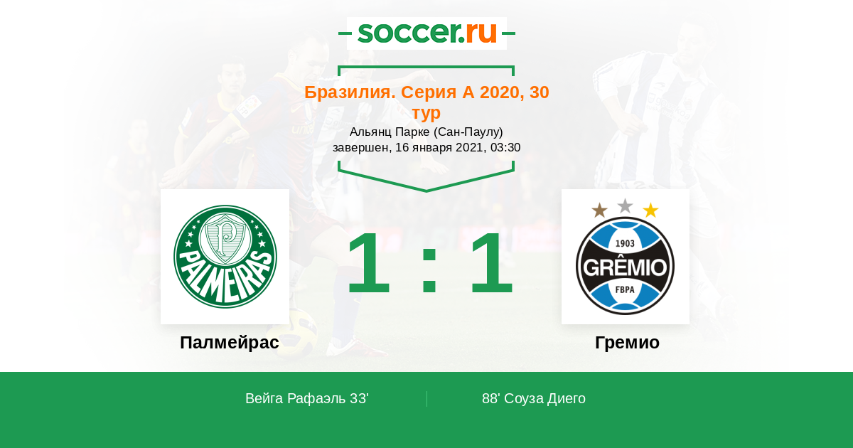 88' (1:1) Соуза Диего (29)