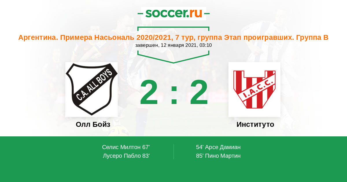 Запасные: Гонсалес Факундо (с 64'), Морено Карлос (с 64'), Ардилес Факундо (с 71'), Гевара Мирко (с 90'), Эспосито Факундо, Дистауло Алехо, Лопес Михаэль