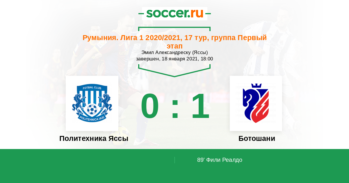 89' (0:1) Фили Реалдо (28)