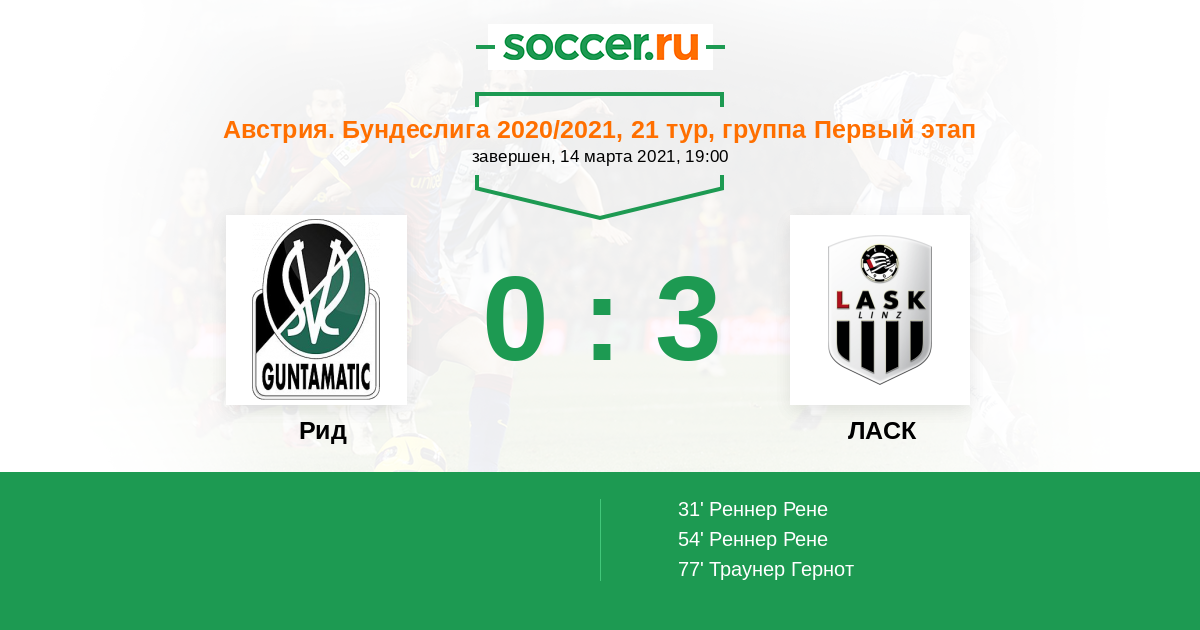 31' (0:1) Реннер Рене (7) (Эггештайн Йоханес (13))