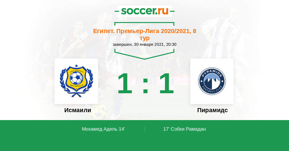 17' (1:1) Собхи Рамадан (10) (Хамада Махмуд (20))