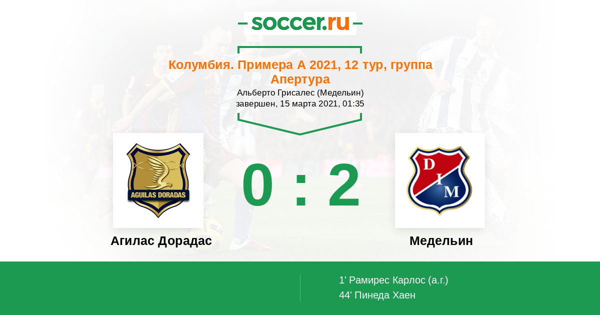 44' (0:2) Пинеда Хаен (16) (Арболеда Хуан (21))