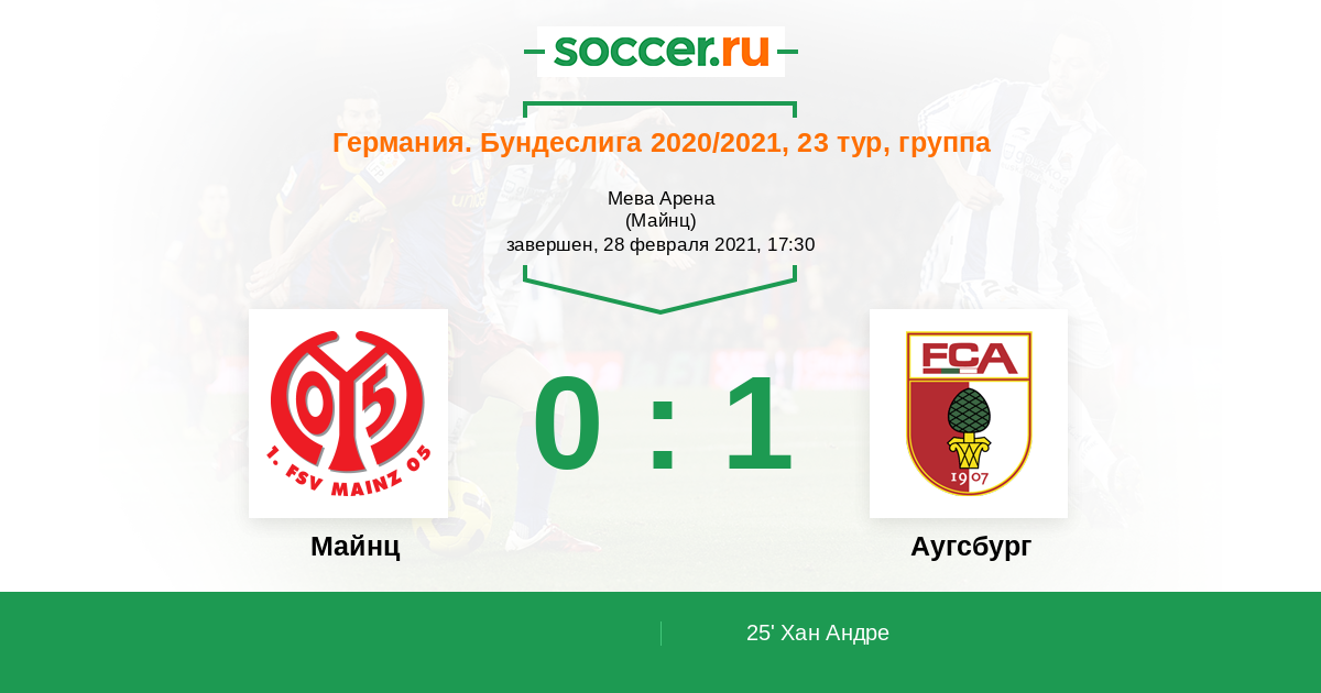 25' (0:1) Хан Андре (28) (Нидерлехнер Флориан (7))