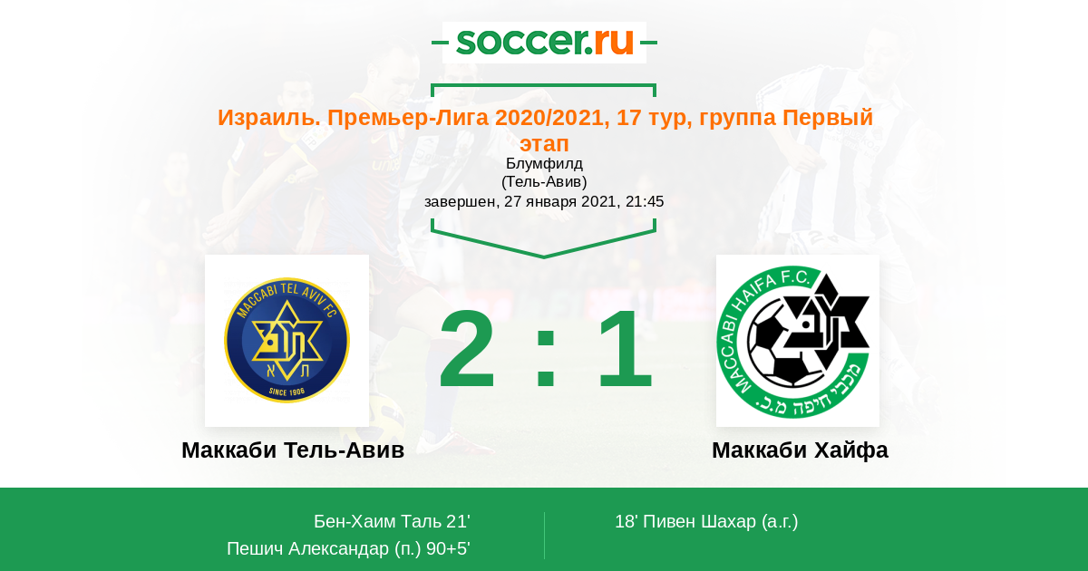 21' (1:1) Бен-Хаим Таль (11) (Хозез Матан (45))