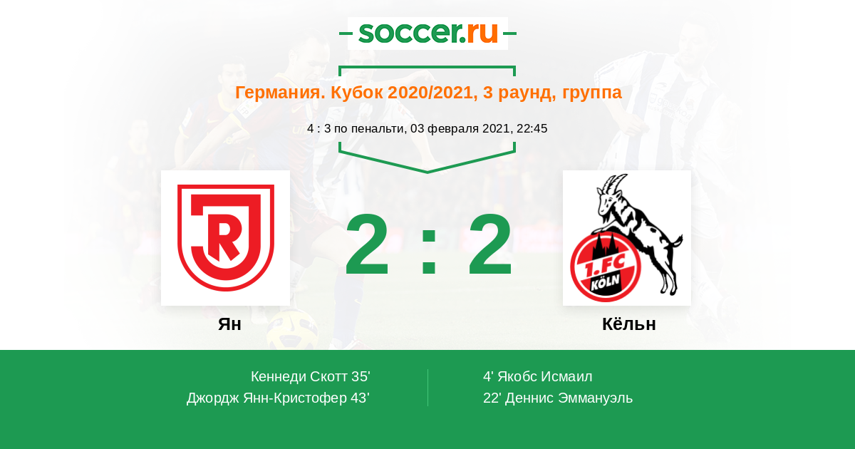 4' (0:1) Якобс Исмаил (8) (Хорн Янн-Килиан (23))