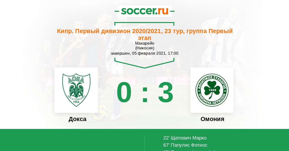 67' (0:2) Папулис Фотиос (13)