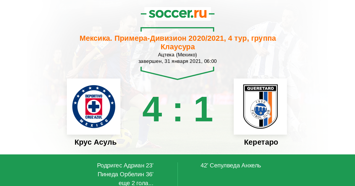 42' (2:1) Сепулведа Анхель (15) (Мадригал Фернандо (8))