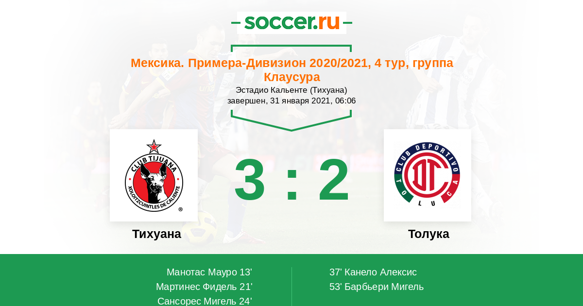37' (3:1) Канело Алексис (25)