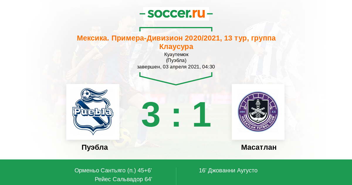 16' (0:1) Джованни Аугусто (30) (Санвеццо Камило (17))