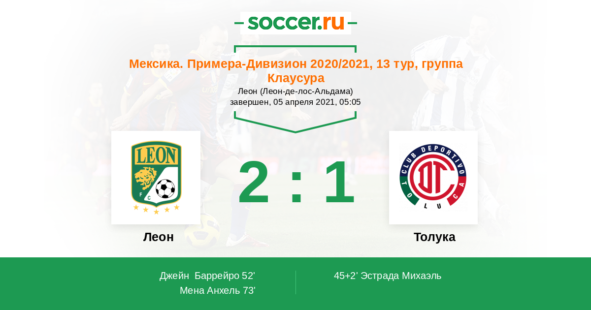 45+2' (0:1) Эстрада Михаэль (13) (Васкес Хосе (35))