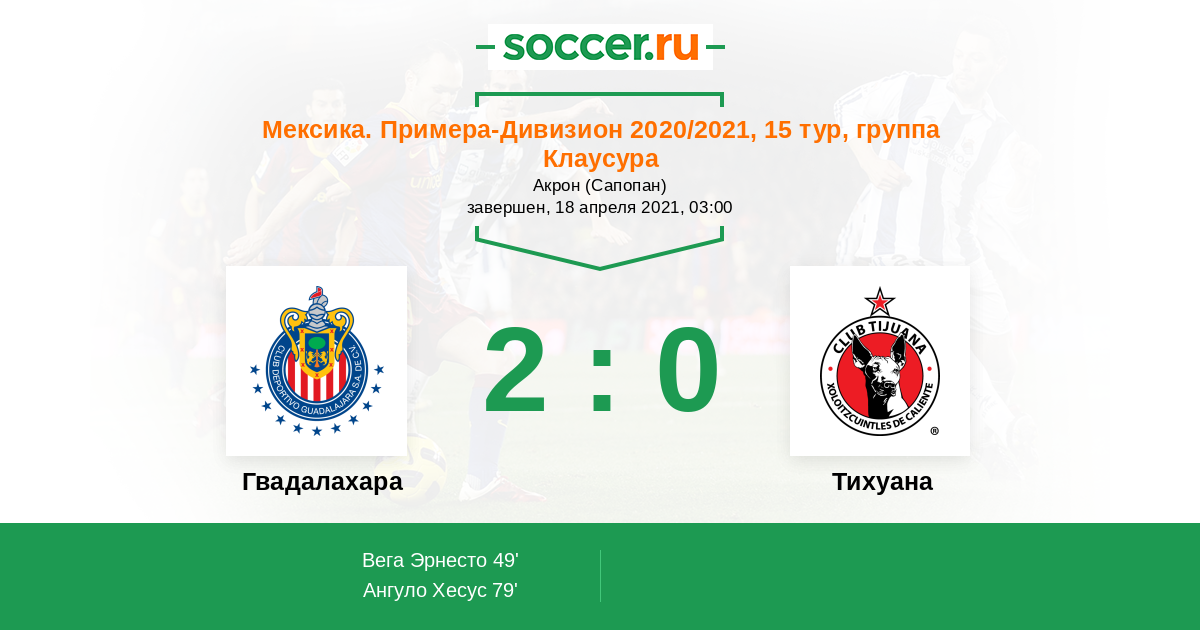 79' (2:0) Ангуло Хесус (19) (Перальта Орибе (24))