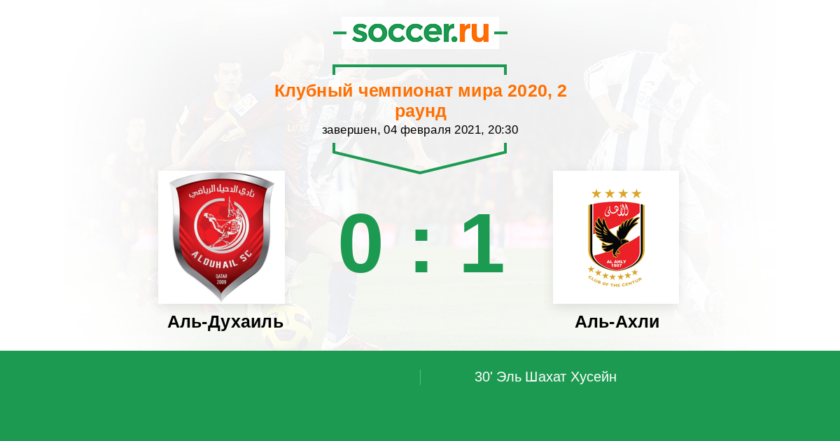 30' (0:1) Эль Шахат Хусейн (14) (Бваля Вальтер (26))